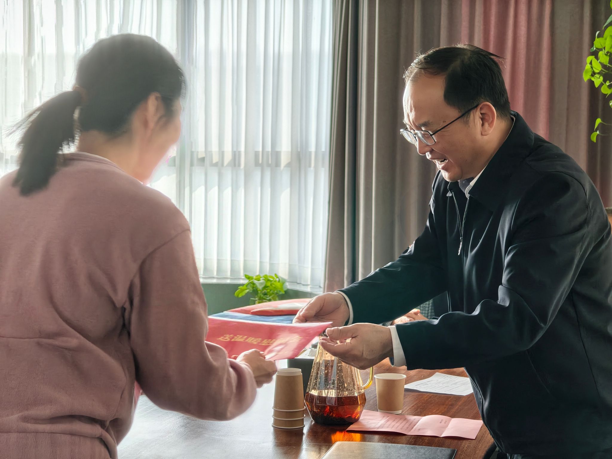 慰问中,校领导与各岗位教职工围坐叙话,在回顾教育教学硕果、校园建设新貌的对话中,既肯定过往奋斗历程,更激扬前行力量。受访教职工深切感受到学校“以情系人、以心暖人”的关怀温度,纷纷表示要将学校的深情厚谊转化为砥砺前行的力量,在新的一年以更坚定的步伐立足岗位,为学校高质量发展注入源源不断的活力。